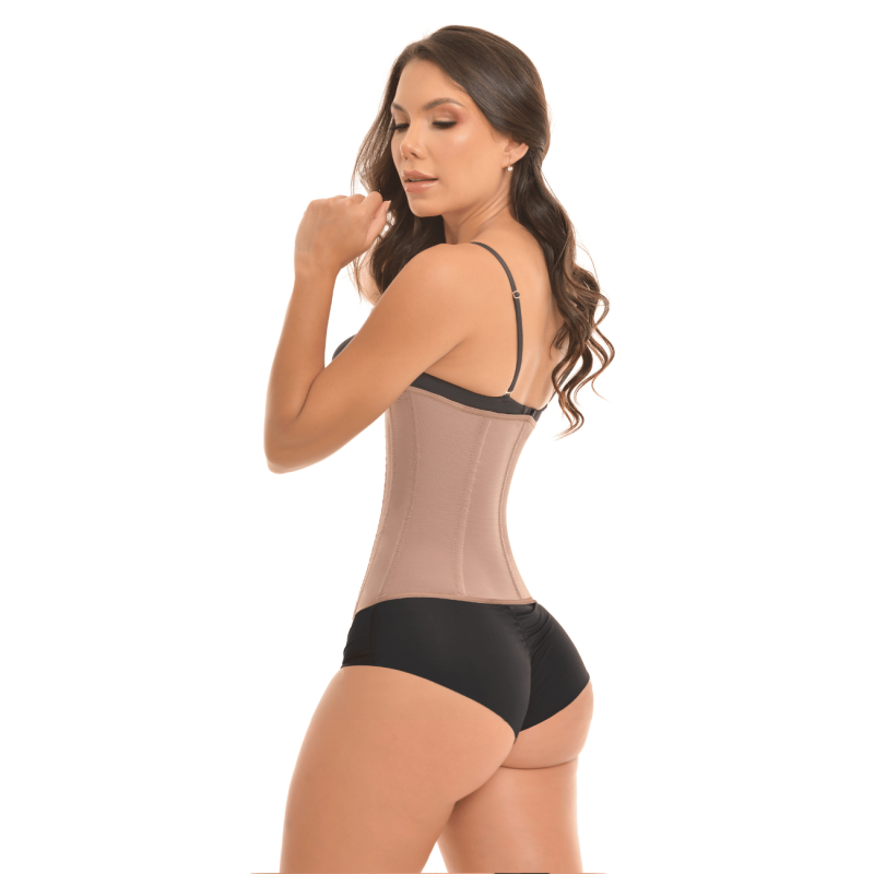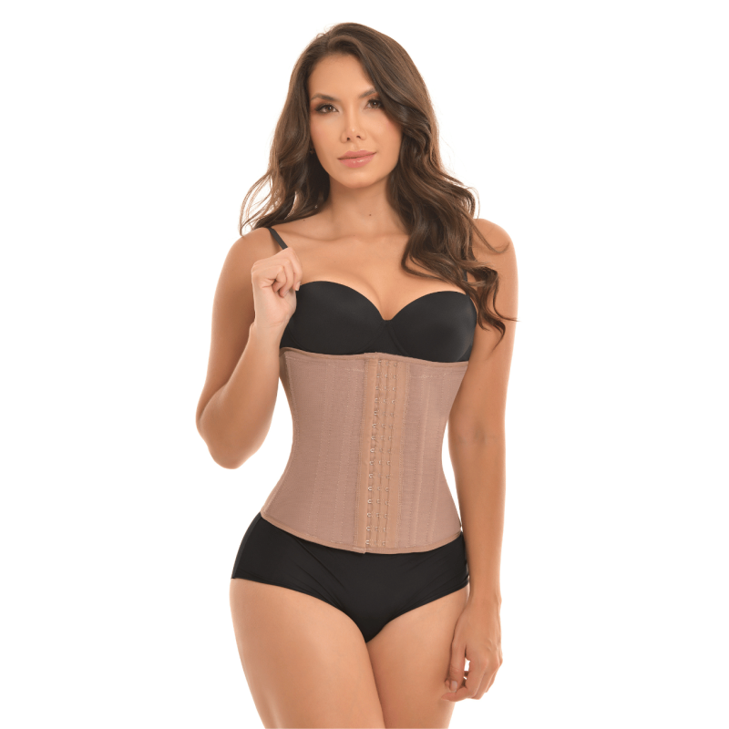 Cinturilla de powernet de alta compresión que ayuda a moldear el abdomen y definir la silueta. Incorpora varillas para soporte lumbar y 3 líneas de corchetes para un ajuste progresivo y cómodo, ideal para uso diario y estético.